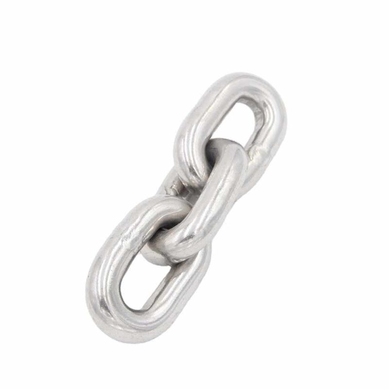 Catene a maglie standard giapponesi altamente lucidate progettate per applicazioni di sollevamento e trasporto industriali.
